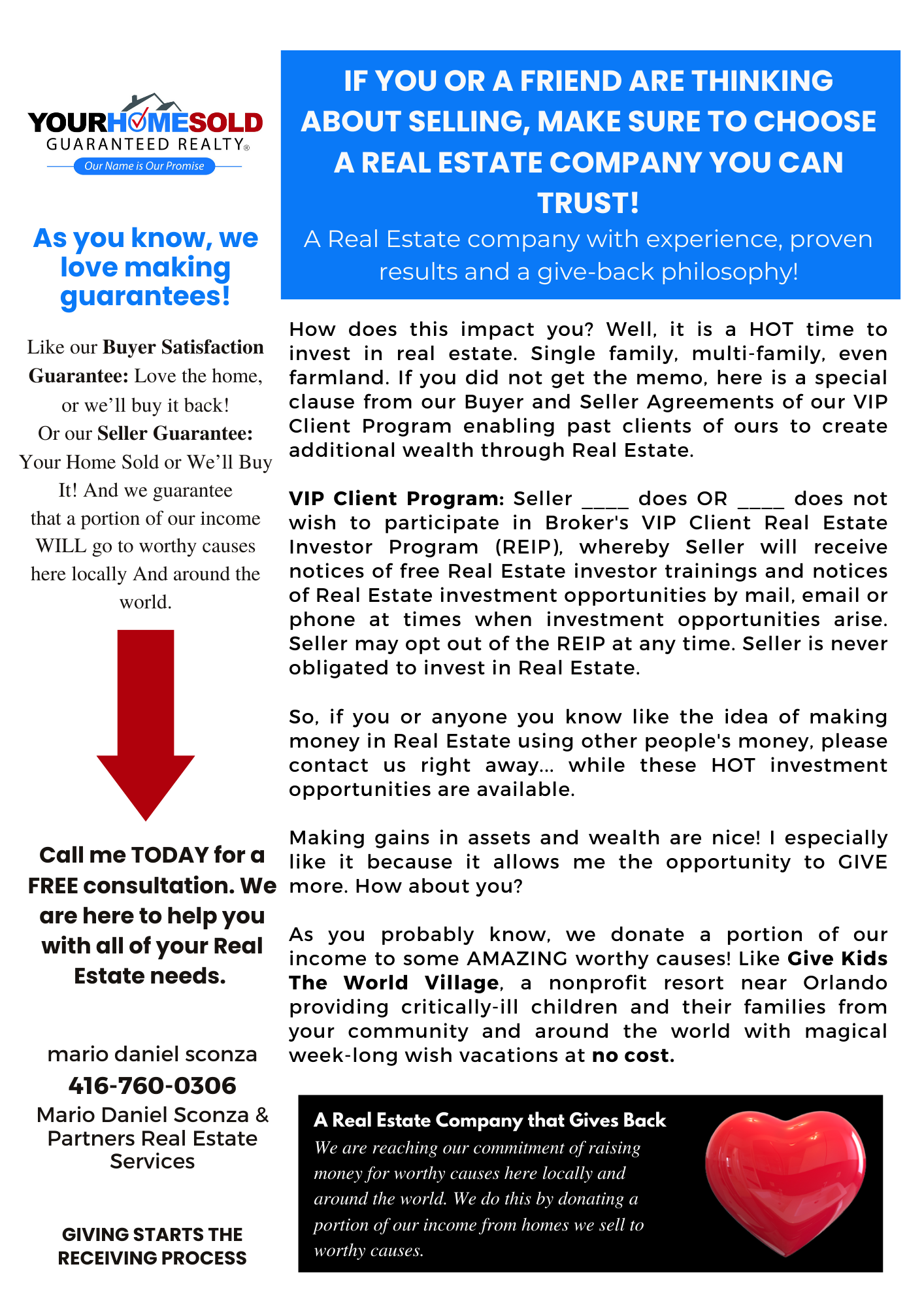 +Mario Daniel Sconza and home owner must agree on price and closing date