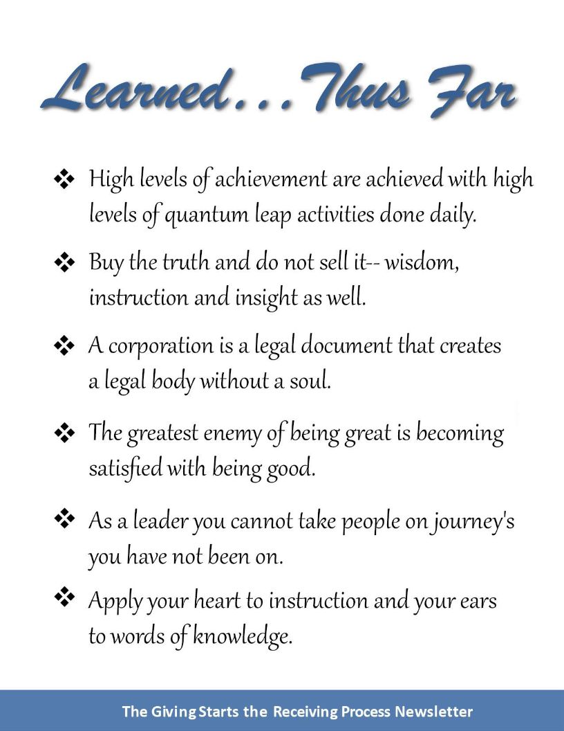 Learned Thus Far